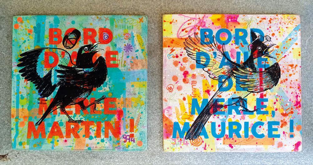 Graphiste ultra rigoureuse pour les projets en communication visuelle qu’on lui confie depuis 2007, Mayeule est également une illustratrice plasticienne fascinée par la découverte et l’expérimental. Elle travaille de son atelier à domicile, sur les hauteurs de Saint-Louis, et aime particulièrement tirer le portrait des gens, des insectes, des animaux… Et les confronter à son regard mordant ou amusé sur l’humanité et la société actuelle.